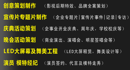 多年的行業(yè)淬練、豐富的制作經(jīng)驗使我們建立起一支專業(yè)、高效、富有創(chuàng)造力的團隊——國家級的導(dǎo)演,為全片制作指點乾坤;睿智的策劃撰稿,妙筆點亮全片靈魂;成熟的執(zhí)行導(dǎo)演,拍攝中統(tǒng)籌畫面效果;老到的攝影師,嫻熟地記錄各式場景;還有新銳的后期編導(dǎo),用靈感為作品增色;充滿熱情的剪輯師、動畫包裝師,讓畫面效果更為精彩繽紛;才華橫溢的音樂制作人,帶來渲染氣勢的合片旋律……不同的工種通力合作,眾志成城,為一個完美影視作品的誕生齊心協(xié)力。